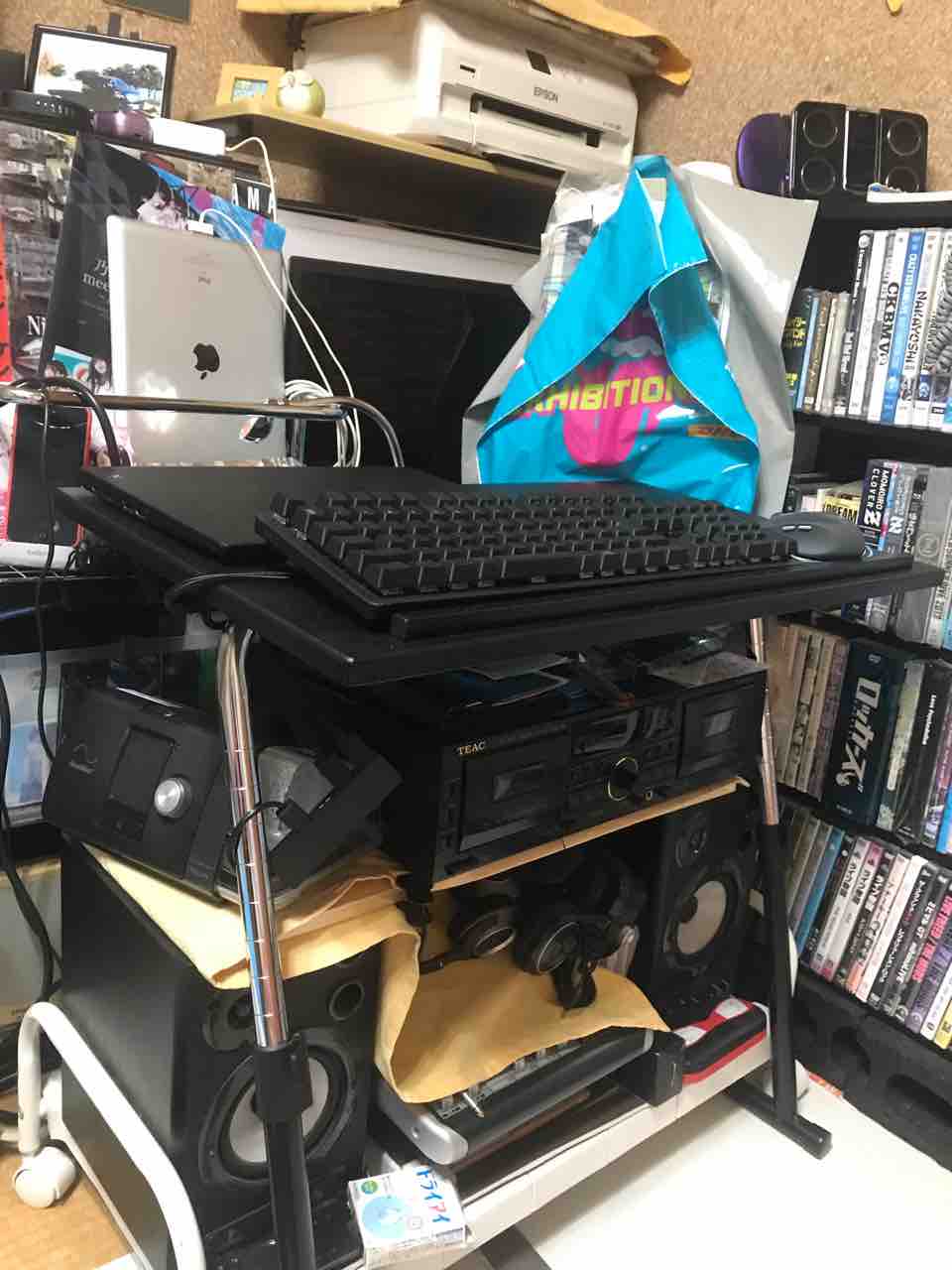 2020年07月12日 今日のこんな夜中に模様替えかよ! こんな時間に何してんの?!と言われながら、機材の移動。おうち時間をより楽しくするため良かれと思って模様替えしました。思いついたらやりたくなるタチで、どうもすみません。配線だけは明日にします! タグ :#模様替え