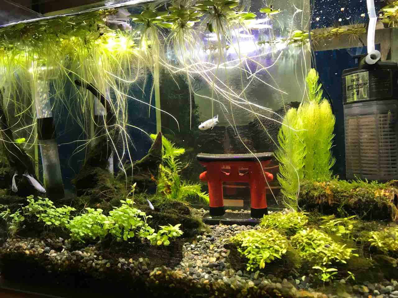 2020年07月12日 今日も水槽 メダカ水槽に前景に謎のamazon水草の種から生えたやつを並べてみました。そして、平木と土管にウィローモスを巻き付けてみました。金魚は相変わらずマツモ入れた途端に引き抜かれました。 タグ :#メダカ#金魚#水槽