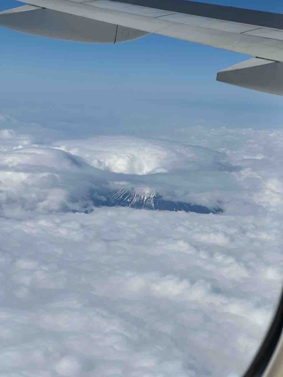 2024年04月30日 今日の富士山 羽田空港は雨だったので、見えるかどうかでしたが、ちょびっと見えた富士山の上は雲が窪んでました!飛行機は搭乗後異常が見つかったらしく、出発が遅れました! タグ :#富士山#ANA#777-200#羽田空港