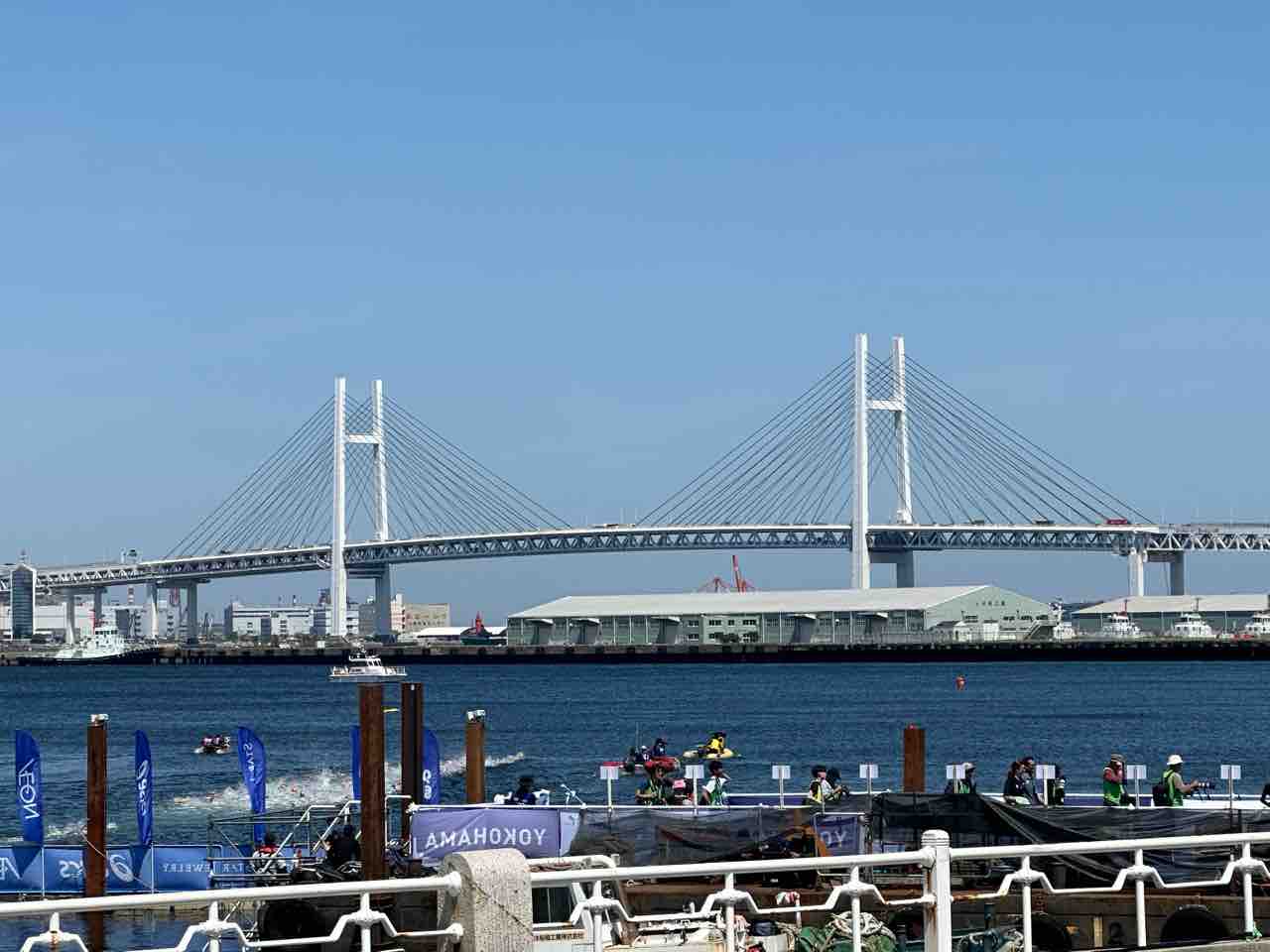 山下公園から赤レンガではトライアスロンやってました。