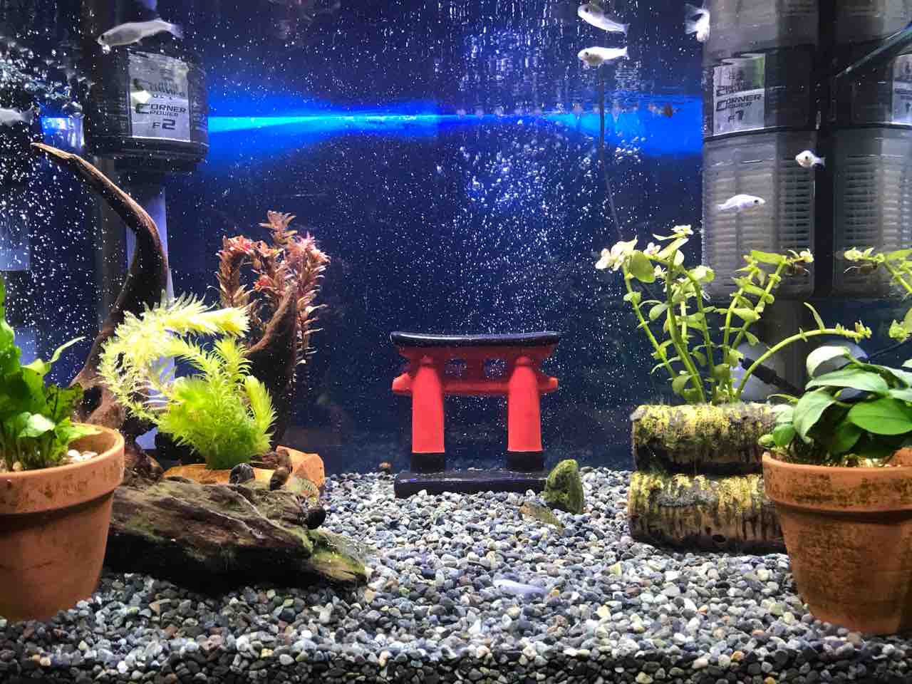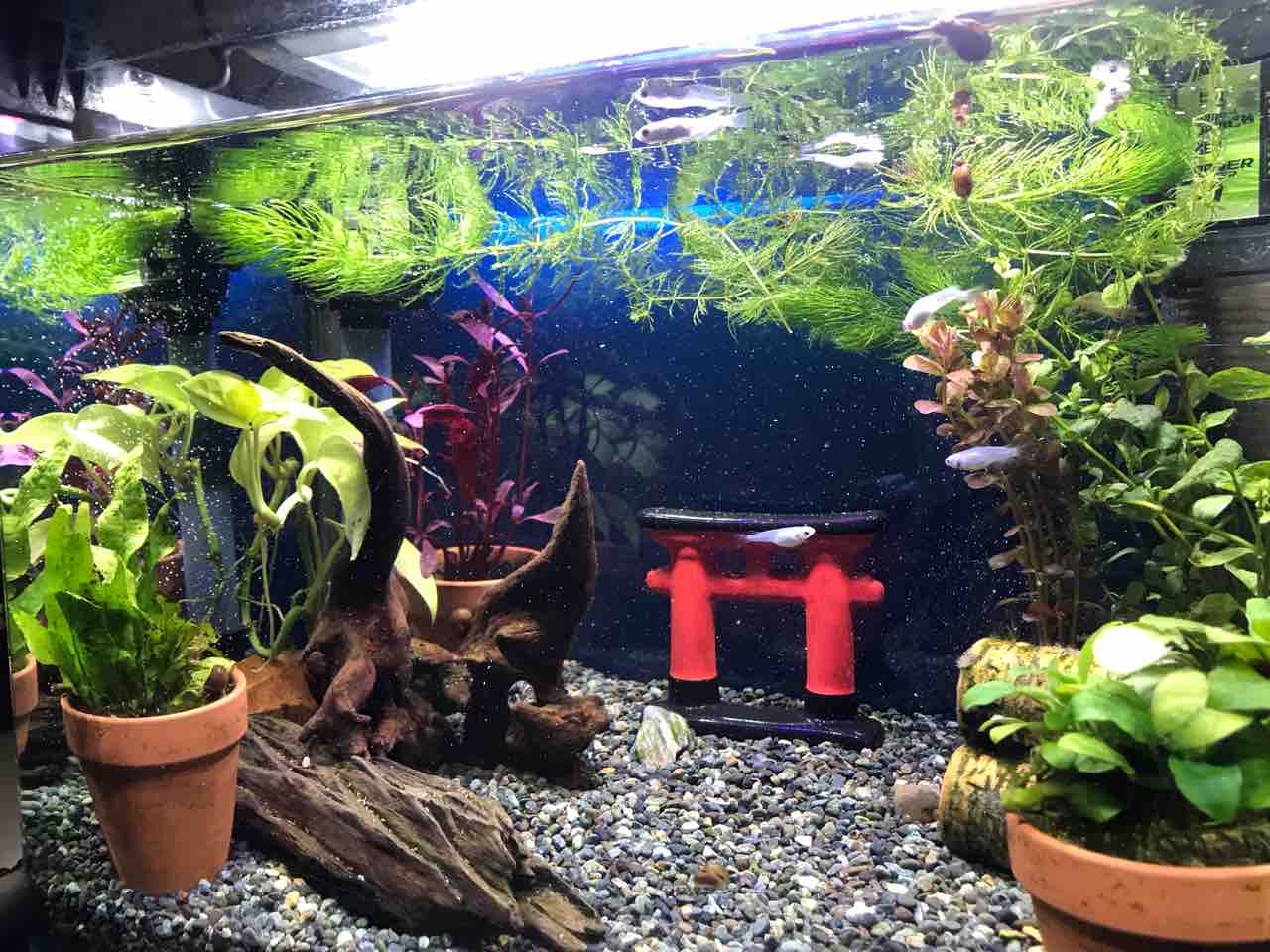 2022年03月14日 今日の水槽 昨日メダカ水槽に赤い草をまた入れてみました。前入れたのはなかなかうまくいかなかったので今度は長持ちしてもらいたいです!金魚水槽には苔取り担当の巻貝を2匹入れてみました。イモヤンは相変わらずです。 タグ :#メダカ#金魚#イモリ#水槽