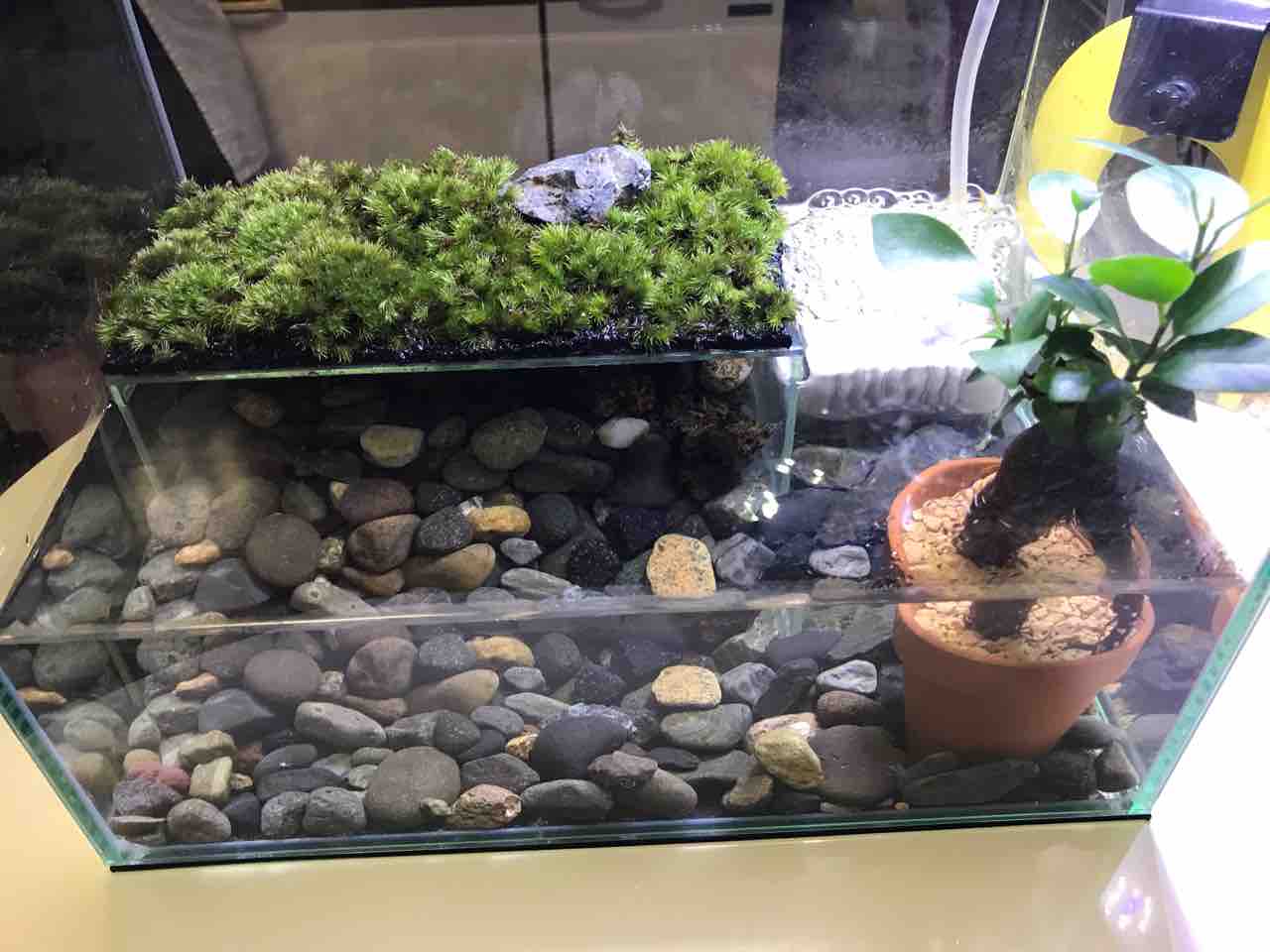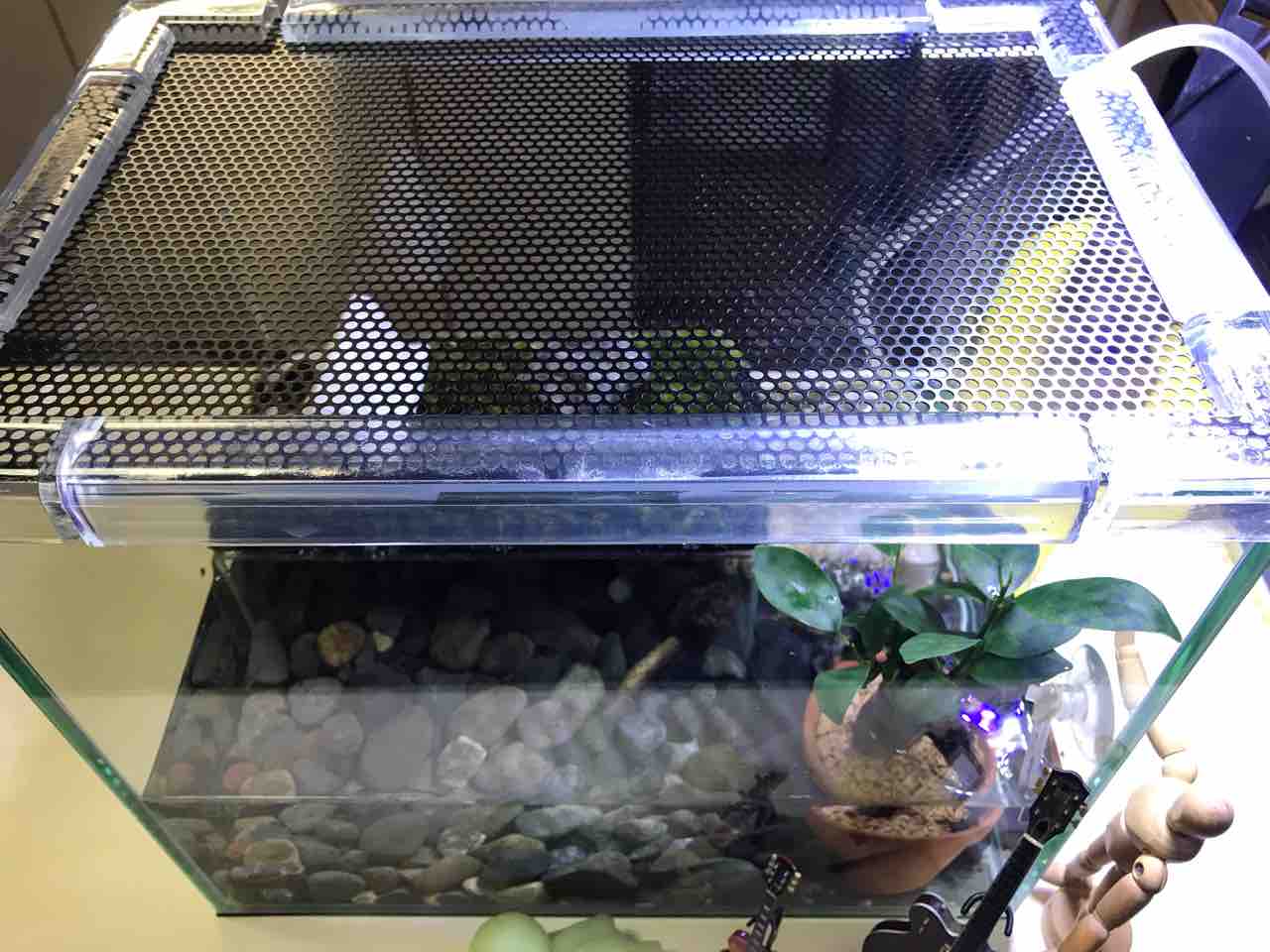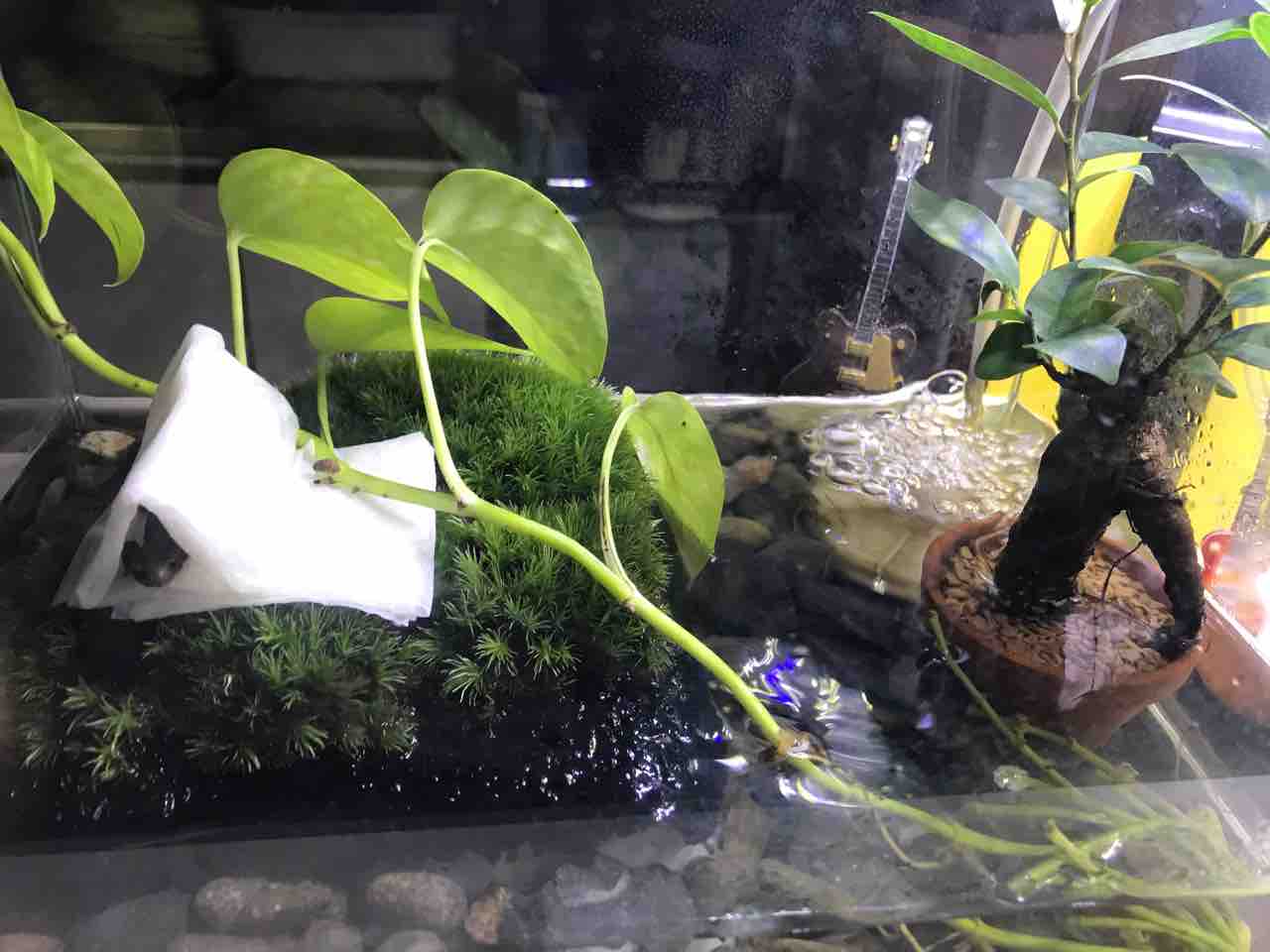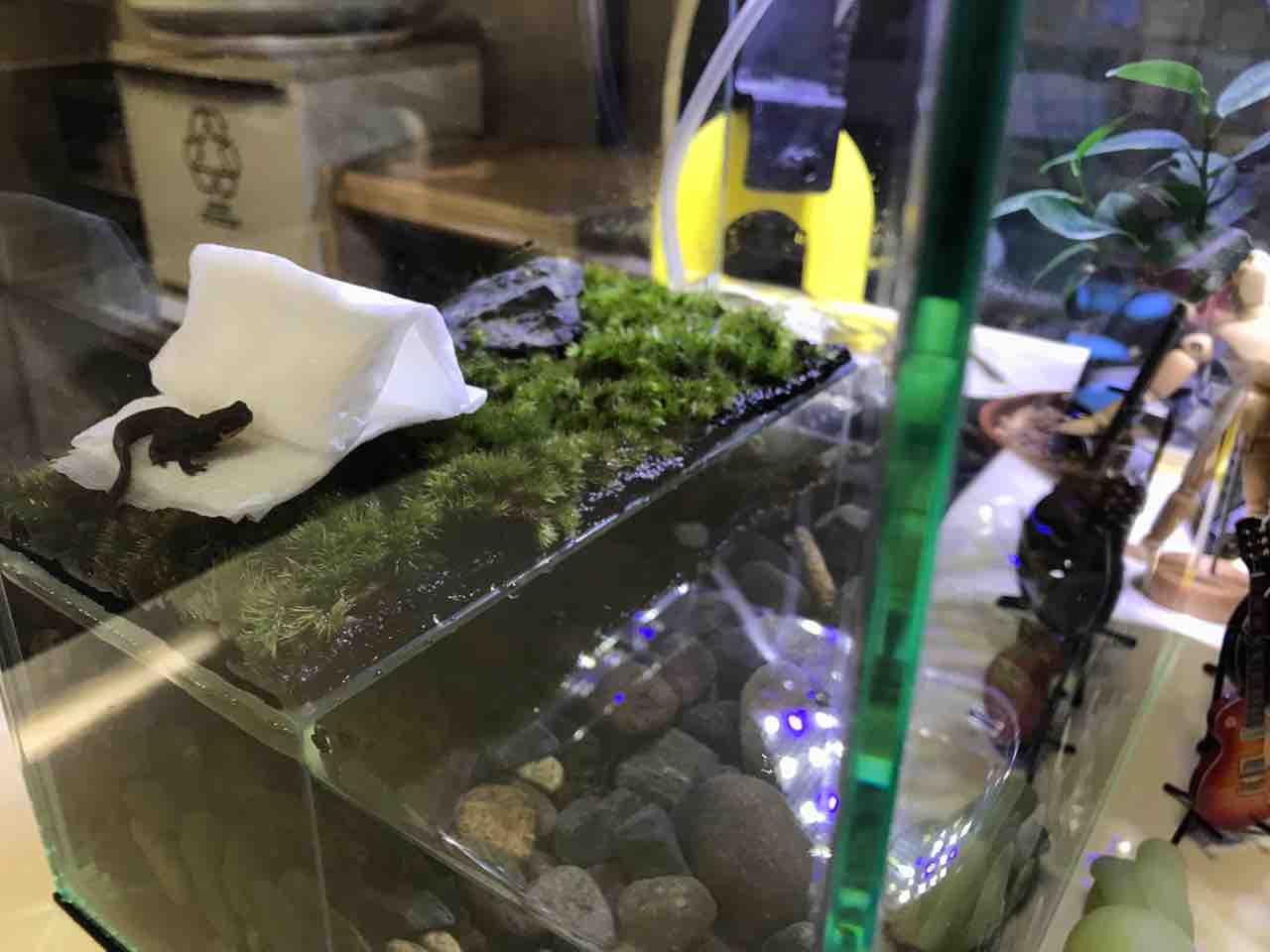 2021年10月17日 今日のイモヤン ついに苔テラリウムの方へイモヤンお引越し!とりあえず、前の環境のおうちはそのまま入れておきました。スクスクと育ってもらいたいもんです。蓋は脱走防止のため自作。割としっかりできました。 タグ :#イモリ#苔テラリウム